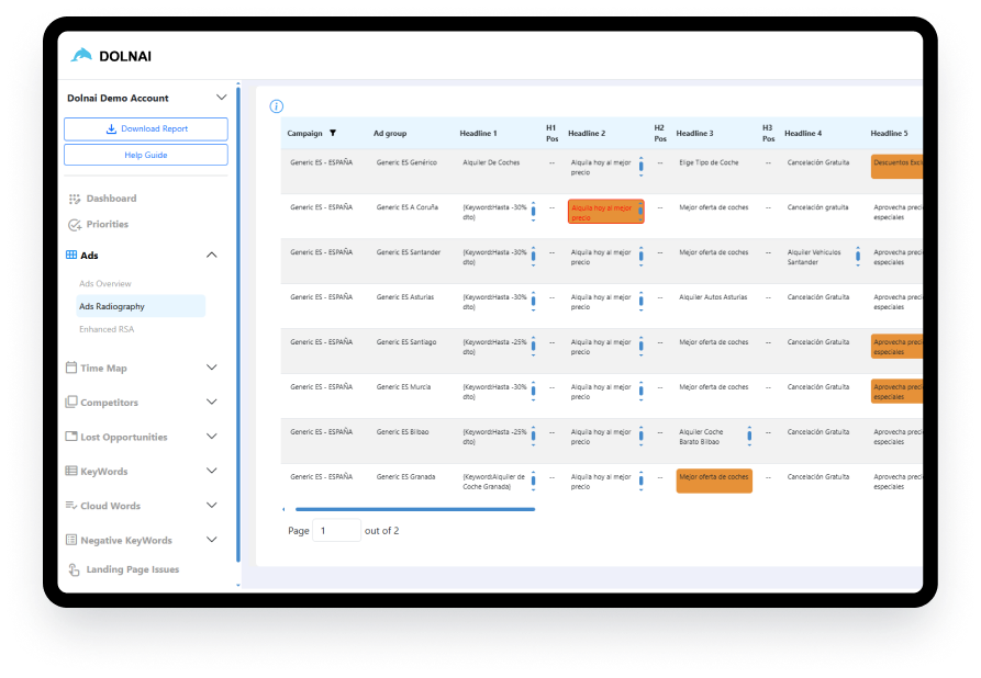 Save hours of analysis of your Google Ads campaigns. Find improvement areas with Dolnai tools. Manage your campaigns much faster with Dolnai.