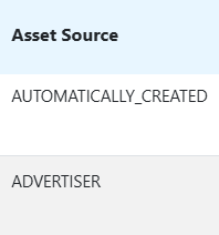 In the Asset Source column, you can see who created each asset. If it was added by the account manager, the source will be Advertiser. If Google created it, the source will be Automatically_Created.
