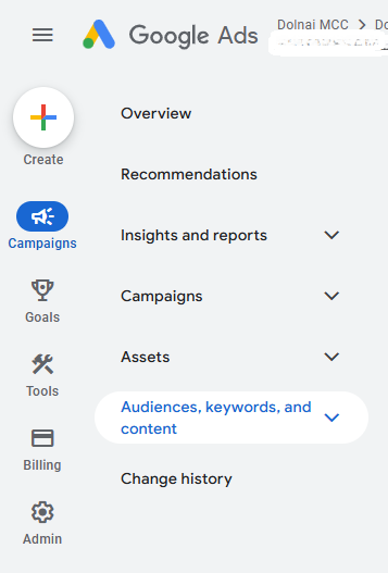 You will find these sections undder 'Audiences, keywords, and content' section.