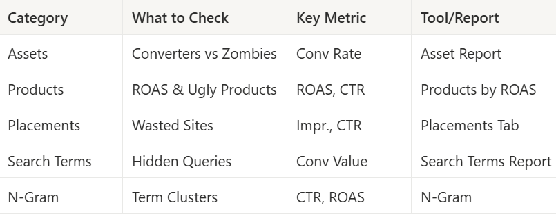 PMax is a tool to achieve business objectives (sales, ROAS, customer acquisition). When applying these corrections, ask yourself: "Did I get closer to my goal?"